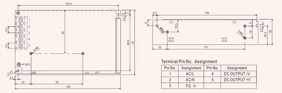 2) AC Input Range:85-264VAC 120-370VDC